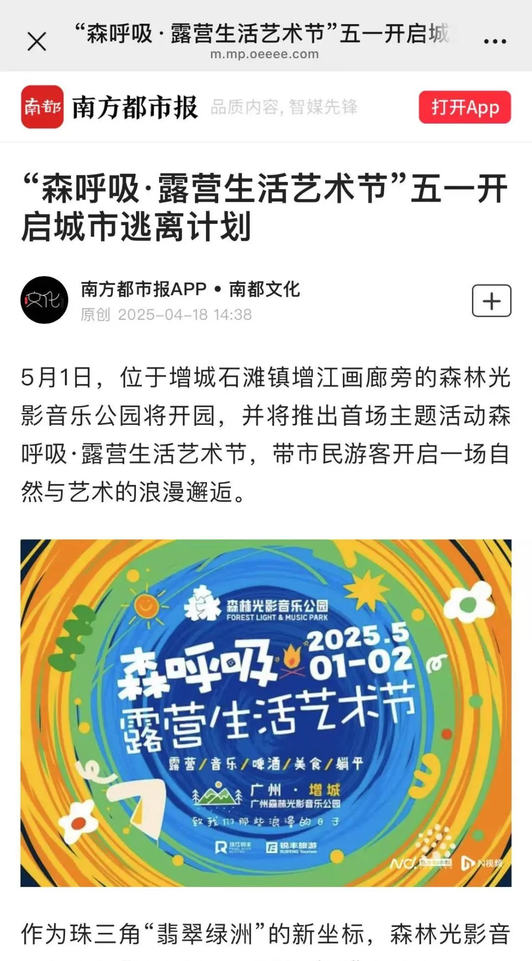 自官宣以來,光明日報、羊城晚報、南方都市報、廣州日報、新快報等主流媒體集體聚焦,2025年“灣區(qū)音樂匯”系列活動森呼吸·露營生活藝術(shù)節(jié)已引發(fā)五一珠三角文旅熱潮。
