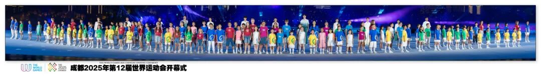 開幕式將“萬千”主題具象為每個生命的獨特光芒,以成都世運會為契機,所有人跨越界限、心手相連,在共同仰望的星空下,見證“相遇就是人間,相依就是萬千”。